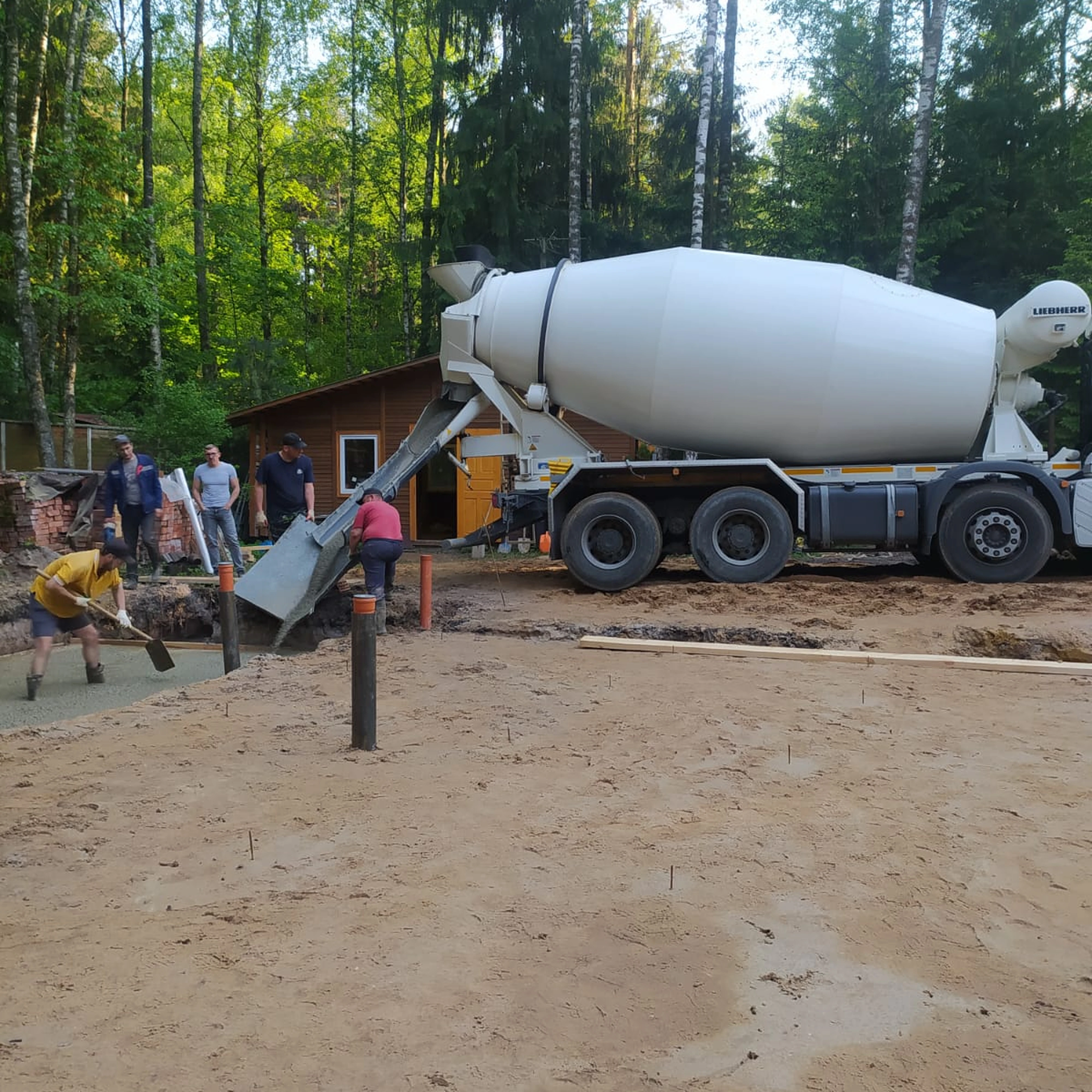 Для земляных и бетонных работ используем свою спецтехнику: экскаваторы, погрузчики, бетонные насосы, самосвалы. Это позволяет выходить на объект в нужный день и не зависеть от сторонних подрядчиков.